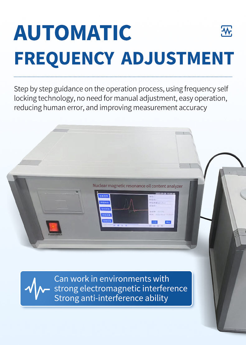 The nuclear magnetic resonance oil meter is a high-tech product specifically designed for detecting the oil content in oil-bearing crops and their processed products. Utilizing nuclear magnetic resonance technology, based on an embedded development platform and digital signal processing technology, this instrument enables rapid determination of the oil content in oil-bearing crop seeds such as soybeans, rapeseed, sesame, corn, cottonseed, sunflower seed, peanut, wheat, tung seed, rice bran, tea seed, as well as their cakes and meals. It is a novel product in the field of non-destructive testing. This instrument features simple and convenient operation, high testing accuracy, and fast testing speed. Compared to similar domestic instruments, it adopts the proprietary "frequency self-locking technology", eliminating the need for manual adjustment and reducing human error, thereby greatly improving measurement accuracy and stability.
