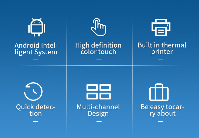 10. Data storage: storing over 100000 records, with built-in functions such as querying, statistics, and batch data processing; 11. The results show that in addition to built-in data viewing, the instrument comes with a thermal printer that can print detection results in real time; 12. 3-minute working state (37 ℃), closed system, not affected by external environment (light, heat) interference;