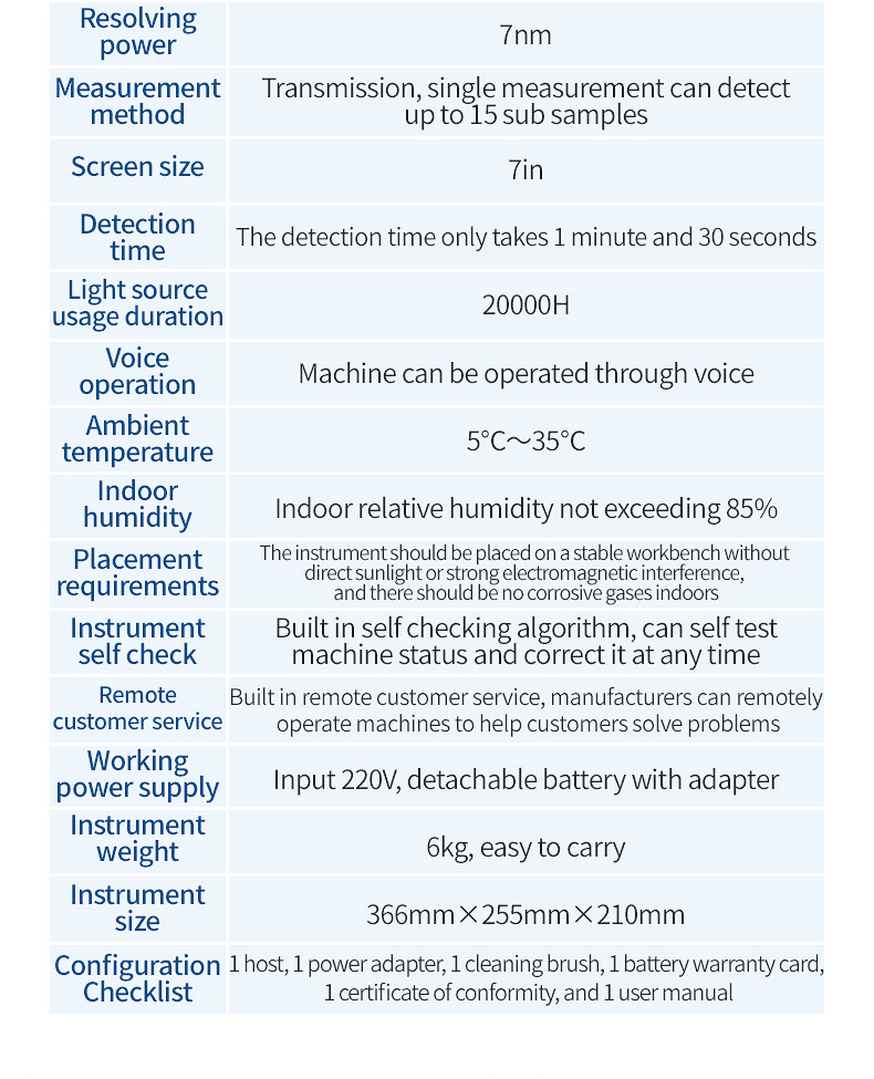 【Introduction】Spectral range: 900-1700nm; Resolution: 7nm; Measurement method: diffuse reflectance, up to 15 sub samples can be detected in a single measurement.
