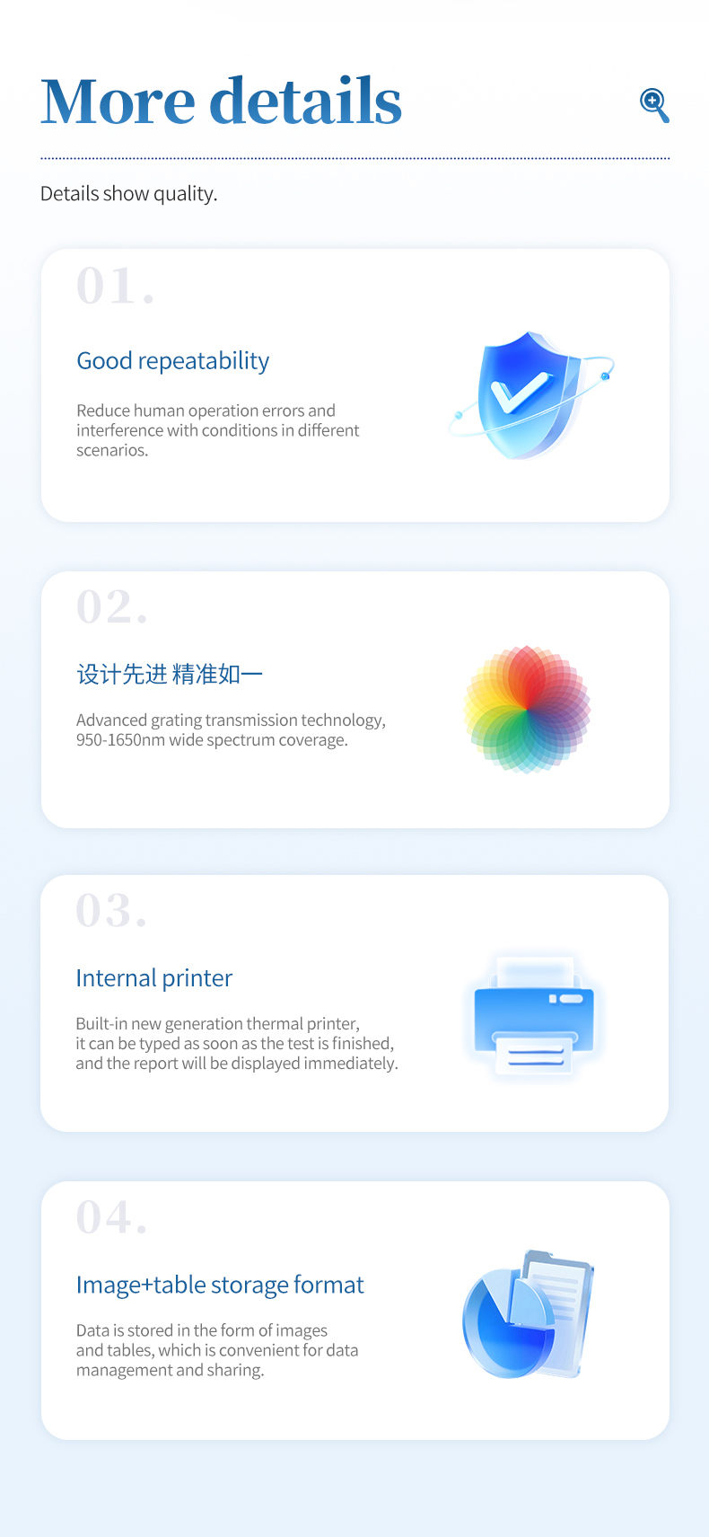 6. Good repeatability: reduces human operation errors and interference from different scenarios;