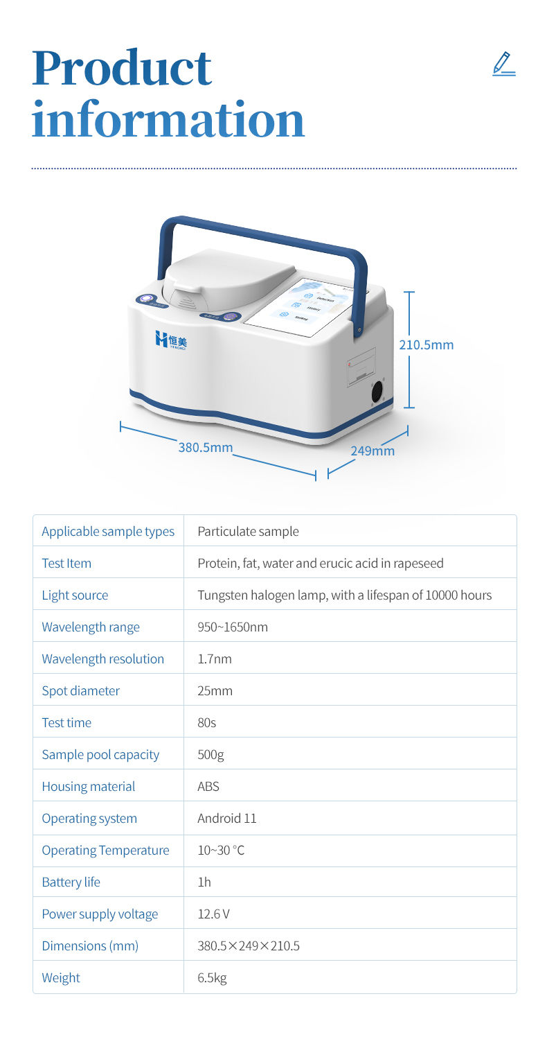 【Introduction】Protein, fat, moisture, and erucic acid in rapeseed; The sample does not require pre-treatment; No need for chemical reagents
